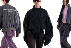 The  Logo Classic bomber jacket and Double Shift utility trousers perfectly juxtapose maximal utility with a minimalist aesthetic; cult pieces that are fast becoming mainstays of any up-to-date wardrobe. Proportions are experimented with extensively, such as the waist-accentuating Zipper Cropped jacket, a piece that demands a directional silhouette whilst simultaneously paying homage to Y2K influences.