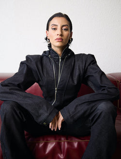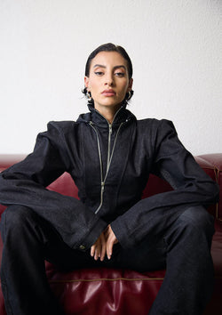 A label known for constantly exploring sustainable and innovative materials to create high-quality and timeless items that people will treasure for years, Cropper describes the latest AW24 collection as “a true celebration of individuality and empowerment, designed to take on the shape and personality of the wearer”. She points out adaptable elements like hook-and-eye closures, zippers, and clasps, “allowing wearers to adjust the look to their own preferences –showing as much or as little as they choose”. Available on Fabric of society, one of her favourite pieces - the Asymmetric Layered Jacket, is made entirely from deadstock material and perfectly encapsulates the mood of the collection, “bold and unique but still approachable and practical for different occasions,” she muses.