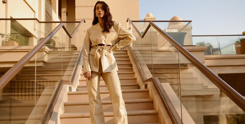 The No. 1 OG on our wish list is their vegan leather blazer and pants. They epitomize effortless dressing that stands out. Perfectly styled with sneakers from Rombaut – the insiders go-to vegan sneaker brand, or with delicate lace up sandals from cult accessories brand, Paris Texas. Part jacket, part blazer (maximum ways to wear serving you excellent cost per wear!), the design is cut away at the waist with a tie fastening and has added design credibility with tailoring-influenced pockets. The matching pants are an essential straight leg cut with a high waist, detailed with mini buttons down the sides of each leg.