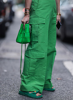 Once only the uniform of off-duty models, the cargo pant is fully prepped for the front row now, cut in lux fabrics and bold and billowy silhouettes.