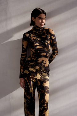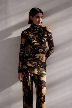 With a sense of elevated streetwear about it, the unique designs easily translate to every day wear, such as their print wide leg jeans and the shrunk fine-knit turtle neck top which equally encapsulate that sought-after Y2K vibe.