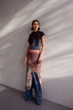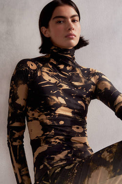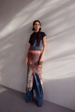 Look out for sculptured shapes and unexpected cut-outs; we have our eye on the Patchwork slit maxi skirt for its original screen-printed artwork. Dynamic prints are seen throughout the collection with strong influences from outer space, such as striking aura-like prints and futuristic galaxy designs. This conceptual label epitomises future fashion, with a mission to break boundaries with their original and abstract designs; we’re excited to see what comes next from this dynamic duo.