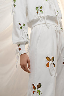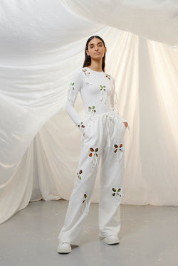 Fabric of Society: Can you explain more about the cut-out flower patterns on the current collection stocked at Fabric of Society? They are beautiful and must take a lot of work to create!