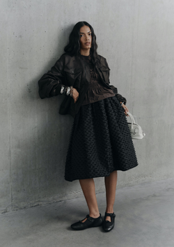 CB: At ease in their own skin. There’s a certain joy in putting on something that moves with you but also holds its own sculptural space. I want women to feel both protected and expressive, to experience the beauty of clothing and showcase their own personality through it.